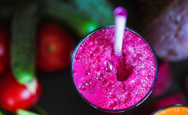 Préparation Dans un blender, mixer la poire et le jus de citron jusqu'à l'obtention d'un mélange lisse. Ajouter le jus de betterave lacto fermenté