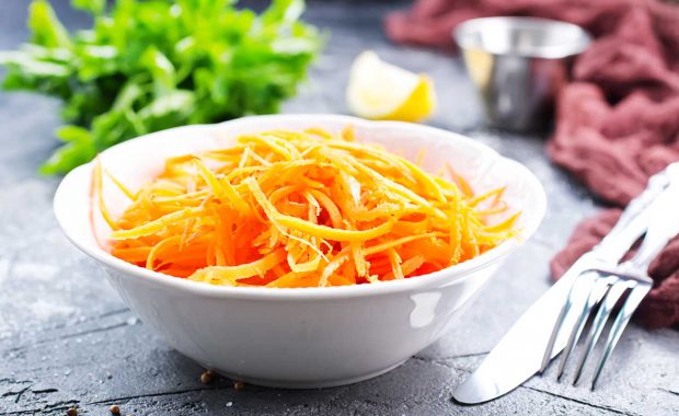 25 avril 2021Salade de carottes râpées à l’orange, curcuma et cannellePréparation Pelez et râpez les carottes.Pressez les oranges pour récupérer le jus.Dans un saladier, mélangez les carottes avec le jus d’orange et